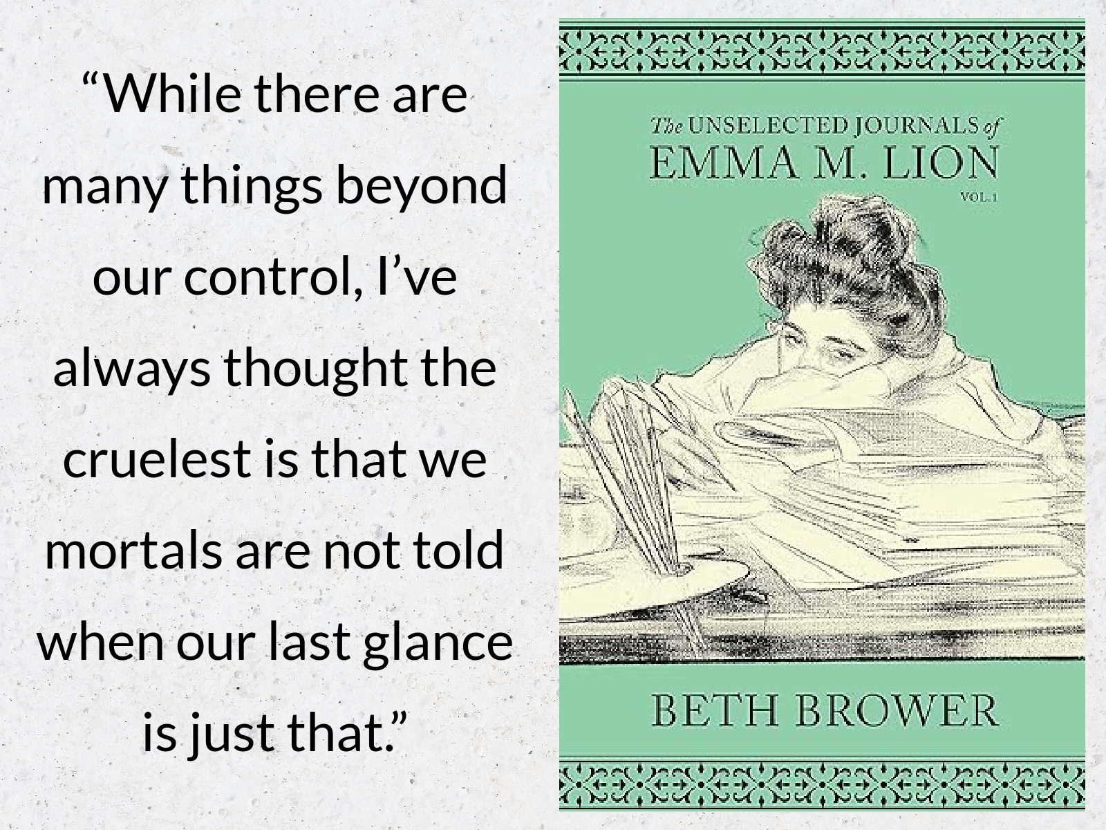 The Unselected Journals of Emma M. Lion: Vol. 3 by Beth Brower—This journal picks up in July, right where the last book left off, and as ever, Emma’s musings are utterly enchanting. Of the original three novellas, this is my least favorite since the main storylines don’t progress as much as I would have liked. But I’m still a massive fan of the series and excited to see what’s ahead for our heroine.