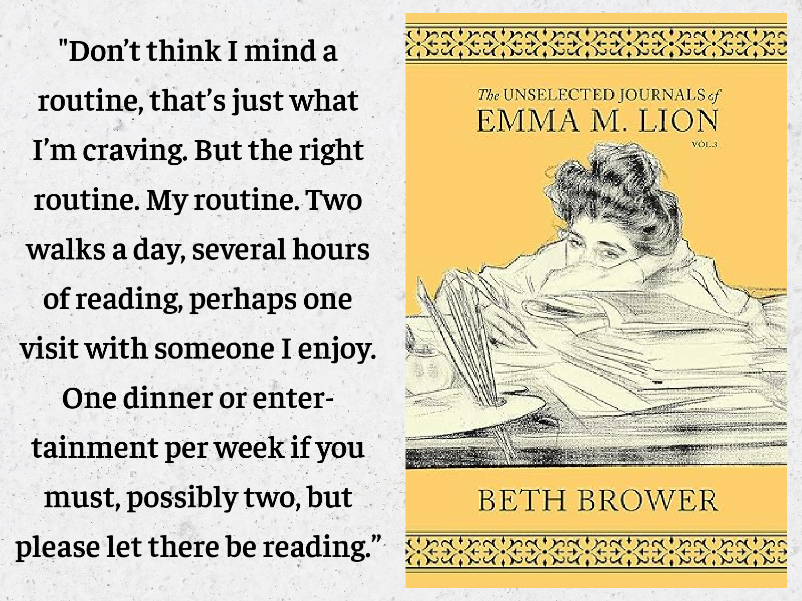 The Unselected Journals of Emma M. Lion: Vol. 1, by Beth Brower:—It’s March of 1883, and Emma M. Lion has just returned to her home, Lapis Lazuli, in the London neighborhood of St. Crispian’s. Unfortunately, life is more difficult than it should be for Emma thanks to Cousin Archibald, whose squandering of the family fortune has foiled Emma’s plans for a charmed, studious life. Emma documents every moment of her time at Lapis Lazuli, from eccentric neighbors to overbearing family members, educational aspirations to unfortunate rat infestations. And thanks to Emma’s quick wit, keen insights, and wry humor, there’s never a dull moment within the pages of this Victorian socialite’s totally unfiltered journals.
