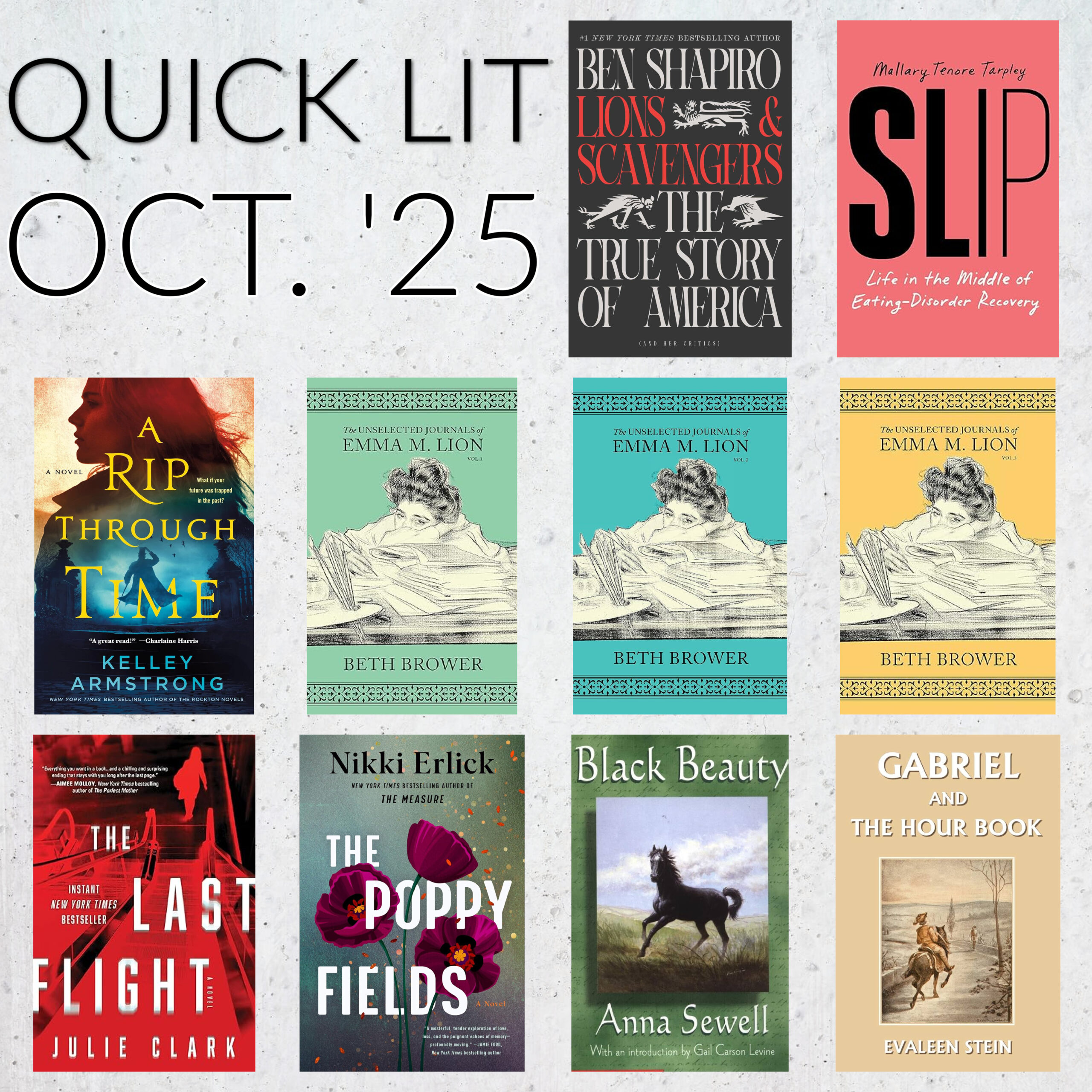 This Quick Lit looks a little different than most. I have three books from a single series (I rarely continue with a series, let alone back-to-back!), and five of the ten books were set in Victorian Britain (not my usual time period). I’ve got less nonfiction than usual, but the two nonfiction titles I’m sharing a really good ones. Let’s get to those reviews!