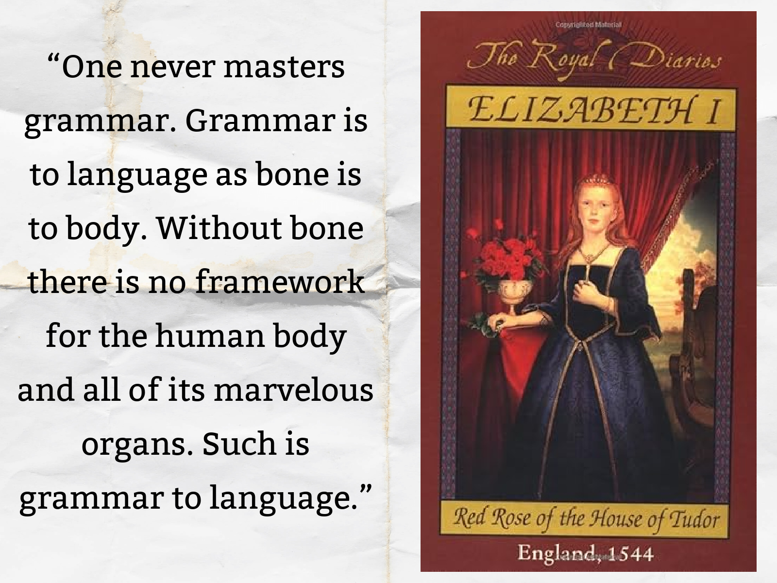 The book covers Elizabeth’s preteen years, as told through the princess’s fictional diaries. Elizabeth recounts her lonely upbringing as a child whose mother and several stepmothers were done away with—all at the hands of her father, yet Elizabeth is willing to overlook his many flaws and remains desperate for his attention. Through her diaries, we get a glimpse into royal life in 16th-century England—the holidays, educational methods, and unsavory medical practices. We also witness the various scandals and intrigue surrounding Elizabeth and her family, from her older sister Mary’s presumed insanity to the rivalry between Elizabeth and her cousin, Lady Jane Grey.