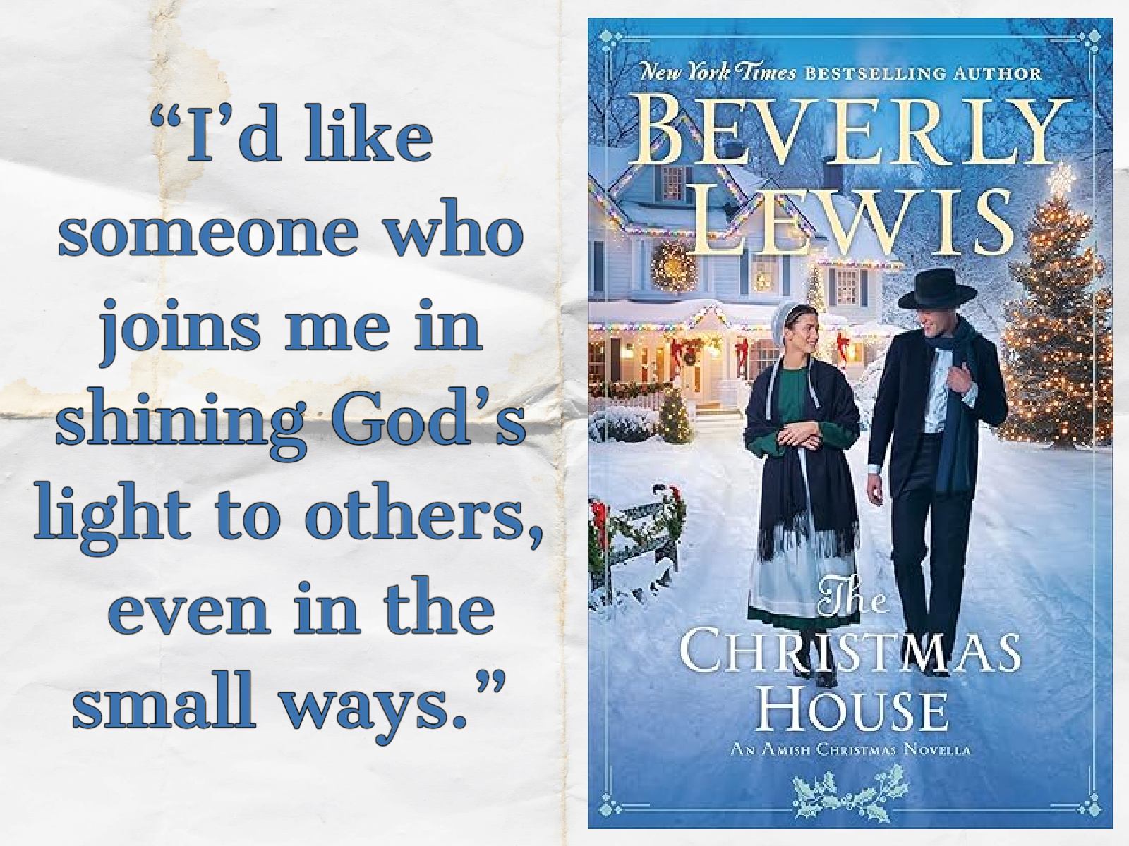 The Christmas House, by Beverly Lewis—Liz Lantz loves leading guided buggy tours for English tourists visiting her Amish community in Lancaster County. But the tours are a little different this year: Liz’s brother Adam, who has been called away for the season, is not able to accompany her on her daily routes, so their father has invited a young Amishman from another community to take Adam’s place. Liz soon warms to the handsome Matthew Yoder, but she is less taken with the lavishly decorated house that has been attracting unwanted traffic and attention to the community. Liz wants to express warmth and welcoming to the new neighbors who recently moved to the home, but she’s not quite sure how to make peace with these Englishers whose approach to life—and especially to Christmas—is so antithetical to her own.