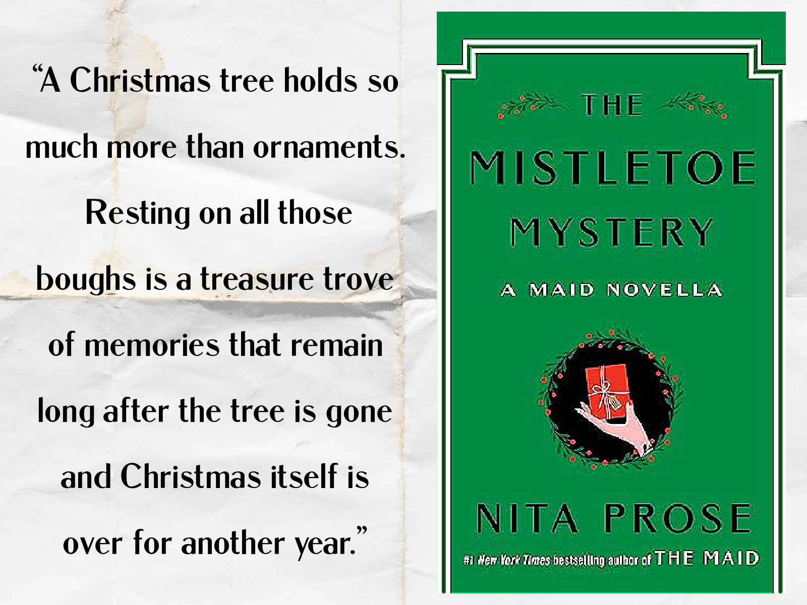 The Mistletoe Mystery, by Nita Prose—As a child, Molly Gray (head maid at the Regency Grand Hotel) always loved Christmas: she and her grandmother didn’t have much money, but Gran always filled the holiday season with fun traditions and abundant joy. Since Gran’s passing, Christmas hasn’t been quite the same, but this year Molly’s adoring boyfriend, Juan Manuel, is determined to make it a holiday that Molly will never forget. But when Juan begins acting mysteriously, Molly starts to questions his feelings for her. A Secret Santa gift exchange at the hotel will be the true test: can she trust those who claim to care for her, or is she destined once again to become the laughing stock of the hotel?