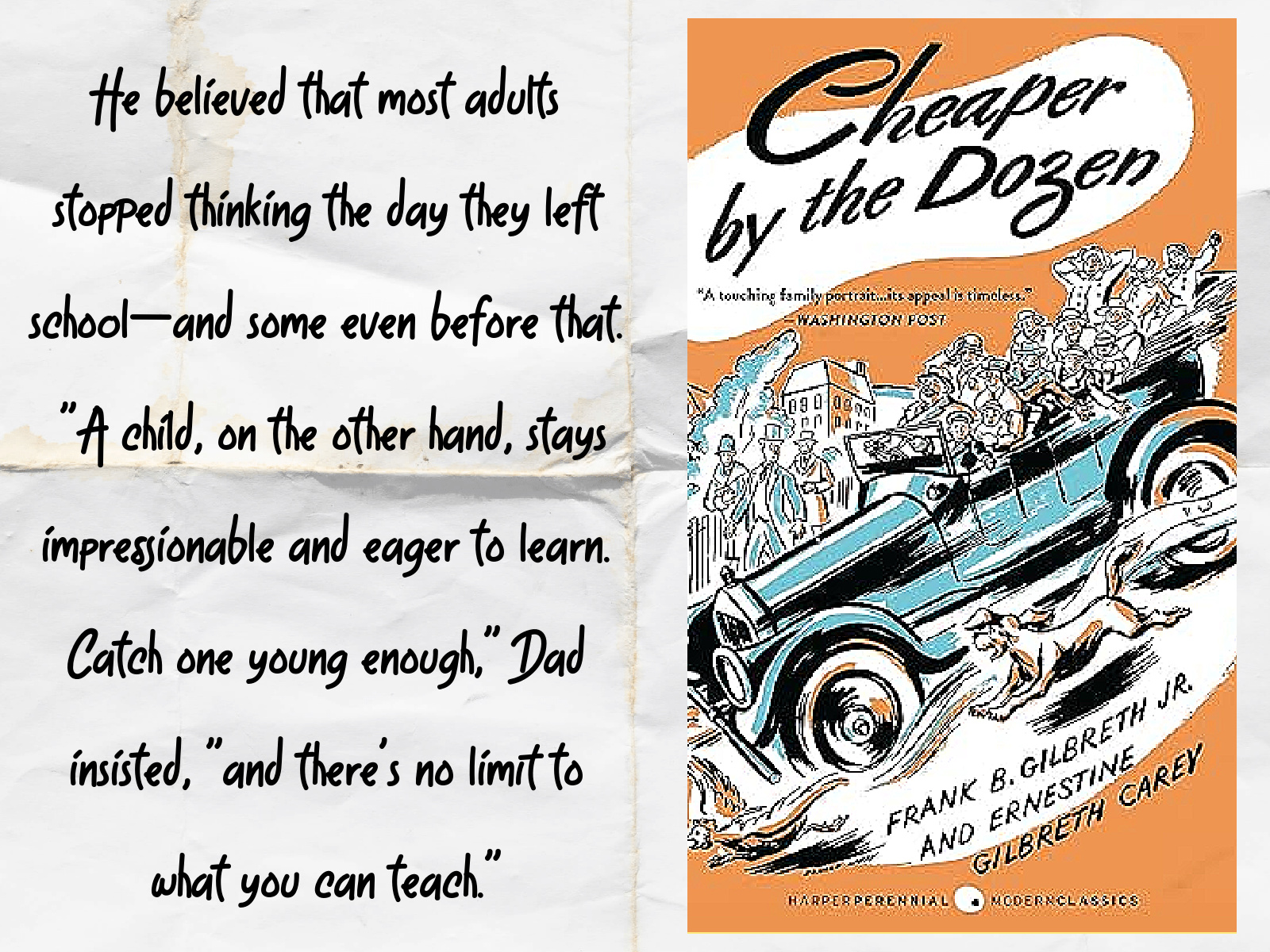 Do you think you have a large family? Do you have far too many brothers and sisters to cope with, and any minute someone will start crying and everything will fall to pieces in chaos? If you have any fewer than eleven siblings, then you have it pretty easy compared to the Gilbreths. Perhaps the way they manage is that stuff comes cheaper by the dozen.