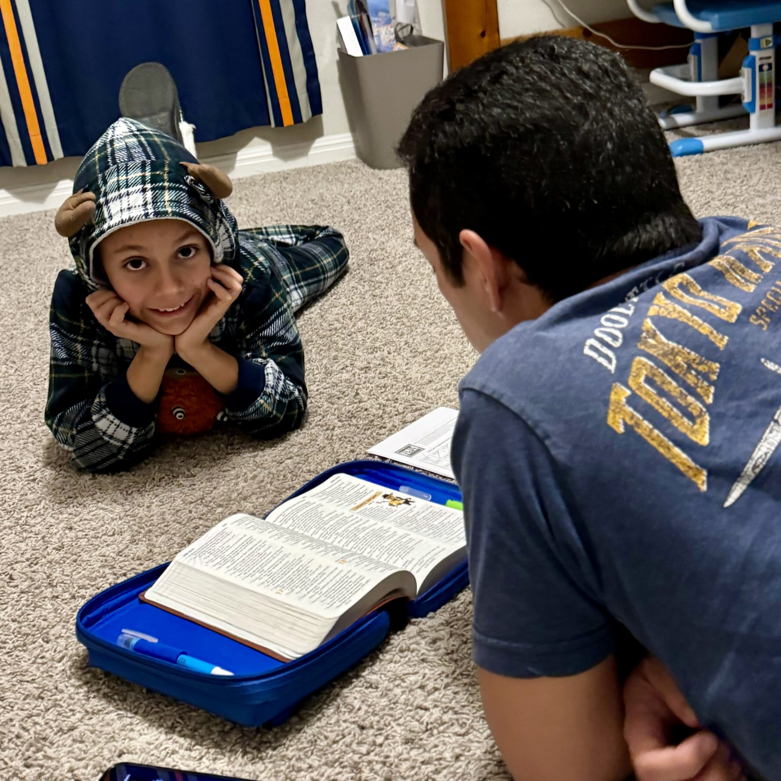 Gathering on the floor of the twins’ room every night for blessings and prayer and Bible time with the kids.