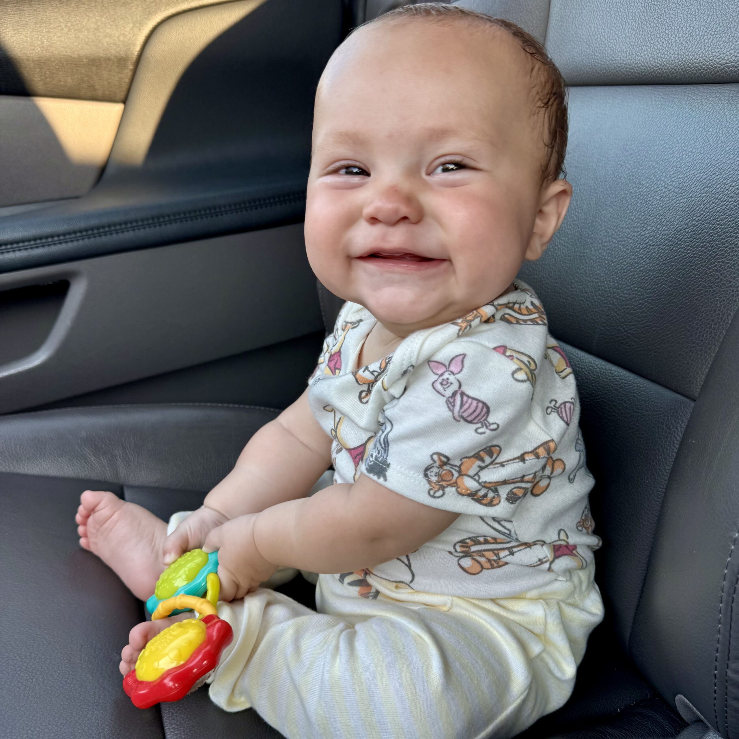 + He waves and says “hi! hi!” to everyone and anything that grabs his attention.