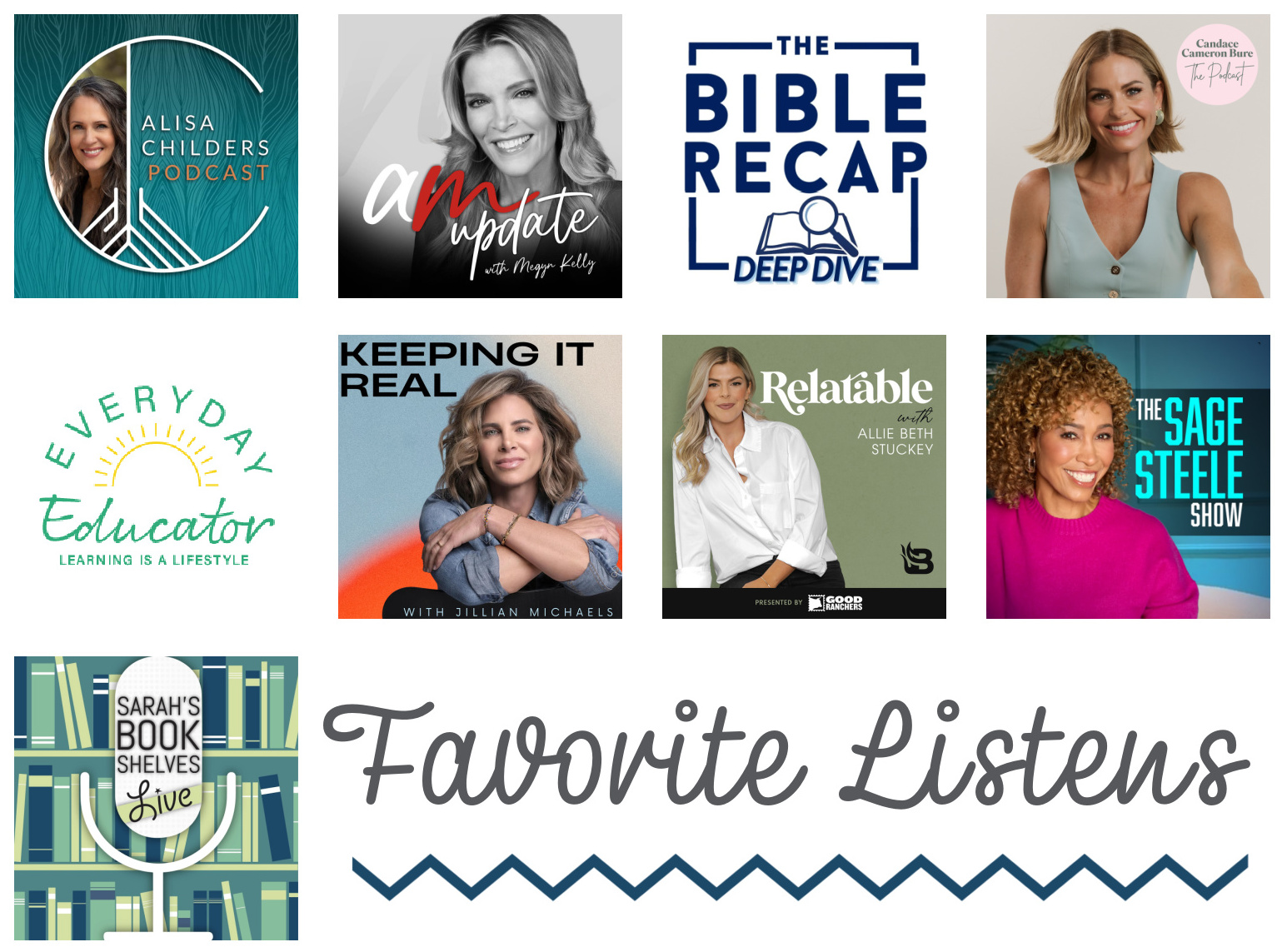 My regular listening queue is always expanding and evolving, with a rotating list of favorites. Some new (or new-to-me) shows I began following this year were Everyday Educator (an excellent resource on classical homeschooling), AM Update with Megyn Kelly (my go-to morning news source, along with Morning Wire), The Bible Recap Deep Dive (a great weekly companion to the daily Bible Recap show), The Sage Steele Show (heartfelt interviews with one of the most endearing forces in modern media), and The Candace Cameron Bure Podcast (especially her Body & Soul series with Lisa Whittle).