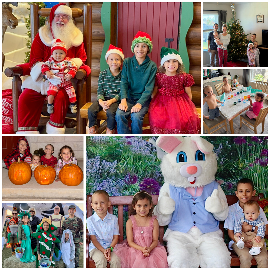 Our various holiday traditions: dying eggs and attending egg hunts and visiting the Bunny at Easter; carving pumpkins and trick-or-treating and going to festivals at Halloween; participating in Advent, decorating our tree, visiting Santa, seeing lights, and decorating cookies at Christmas.