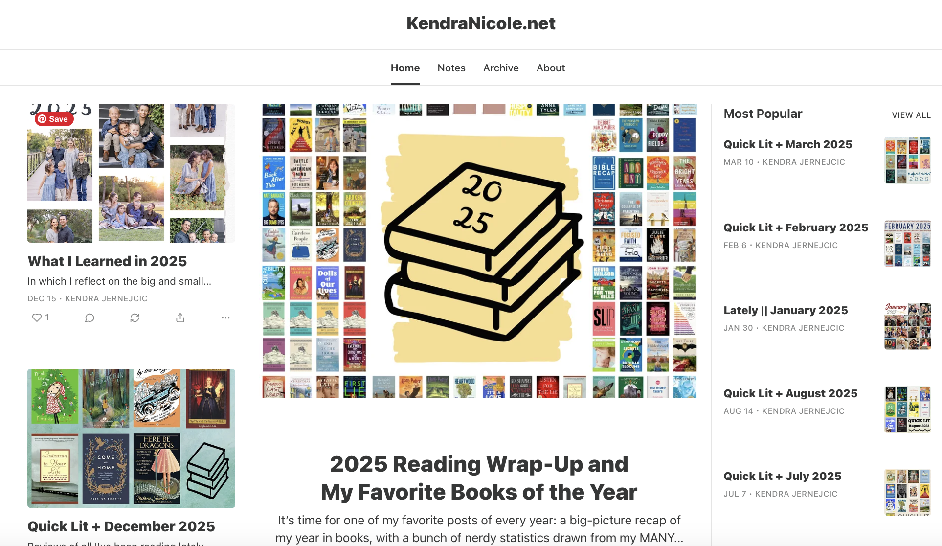 Last winter I began publishing my writing to Substack, and while my readership there is small, I’ve enjoyed having my writing in both spaces and hope to invest in that platform more intentionally in the coming year.