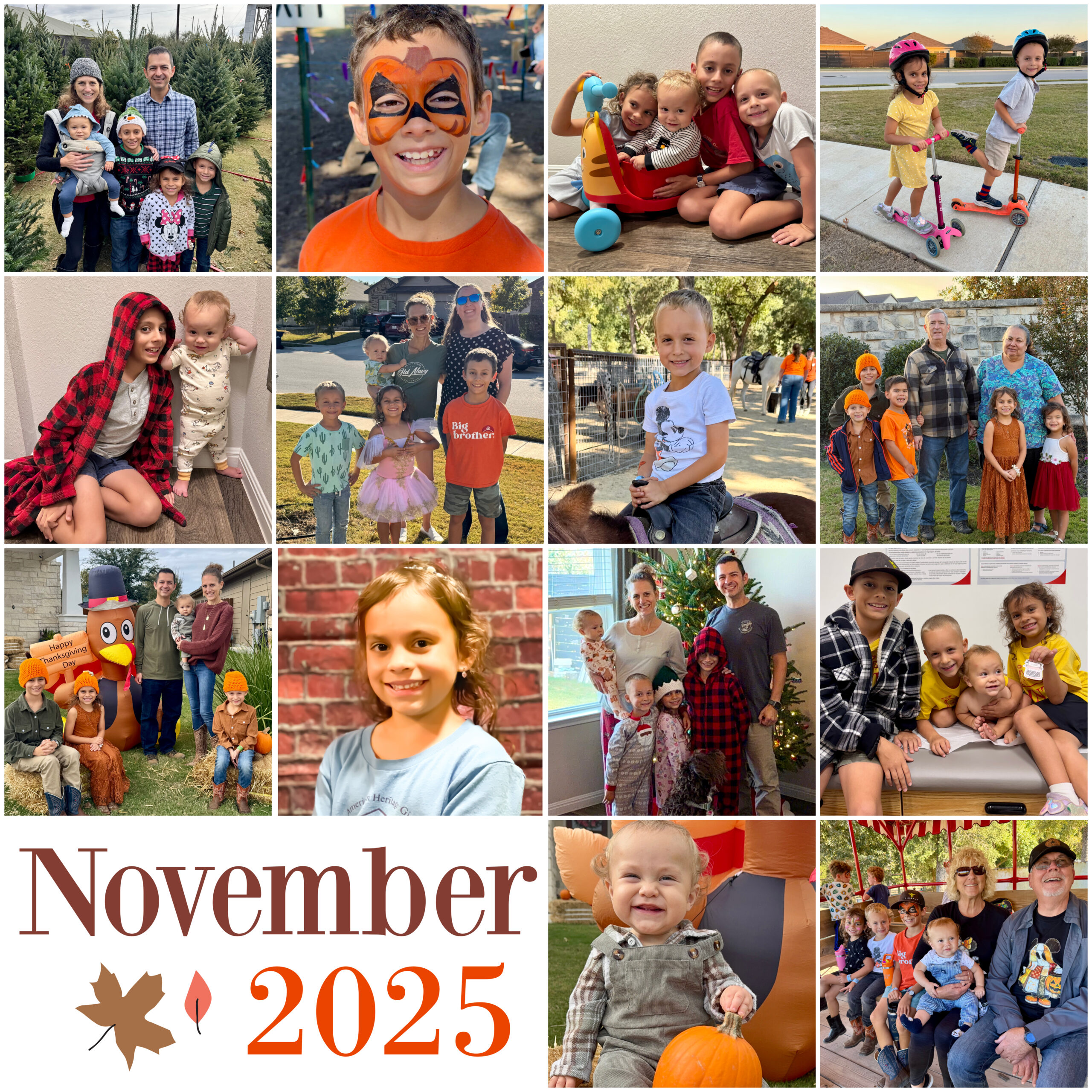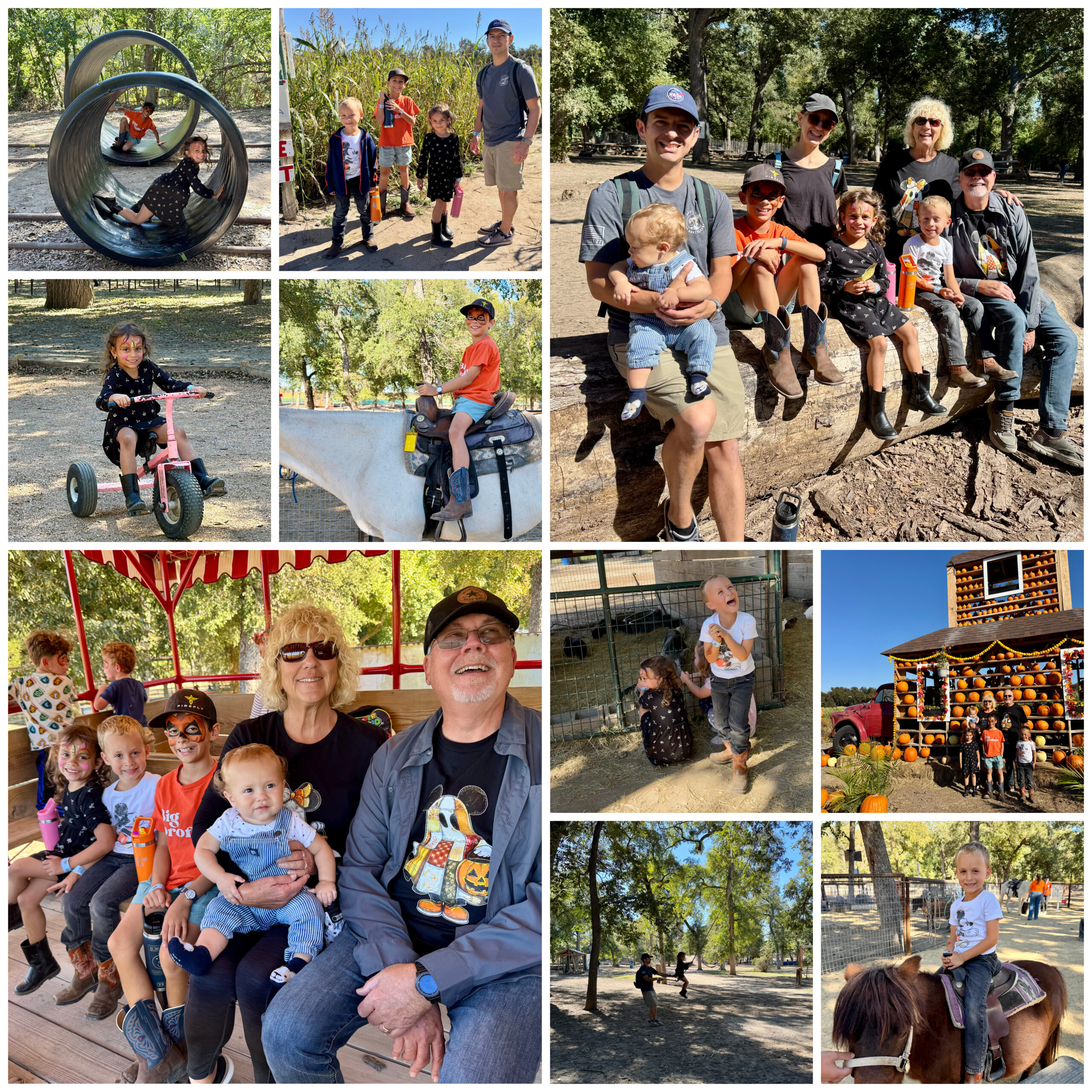 My parents were visiting us the last week of October/first week of November, and on their last day in Texas we all headed to Sweet Eats for some fun on the farm! (This is one of my favorite hacks: go to the pumpkin patch AFTER Halloween; all the fun, without the crowds!) We did a corn maze, cheered on racing piglets, went on a tractor ride, pet baby animals, and watched the kids ride horses, get their faces painted, and play on the farm’s many swings, slides, bouncers, and other play equipment. Sweet Eats has become one of our favorite spots, and I was glad we got to enjoy it with my parents this year.