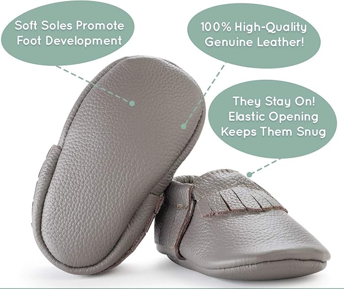 BirdRock Baby Moccasins—Why are baby shoes so hard? I’ve had the toughest time finding shoes that fit Nico’s (admittedly chubby) feet, and when I have found pairs that fit, he refuses to leave them on. That was fine when he was newly crawling, but now that he’s standing, cruising, and on the cusp of walking on his own, he needs some shoes that fit and stay on his feet. We’ve had great success with moccasins from Freshly Picked with our older three kids, but those are *really* pricey. As an alternative, I decided to give this less-expensive pair from BirdRock Baby a shot and they’ve been perfect! They’re easy to get onto Nico’s feet but almost impossible for him to take off on his own. The 100% leather shoes mold to his feet and are super-duper cute, and the grey color goes with everything. He’s sure to outgrow them before wearing them out, but I like that they come with a lifetime guarantee. I can’t say enough good things about these mocs!