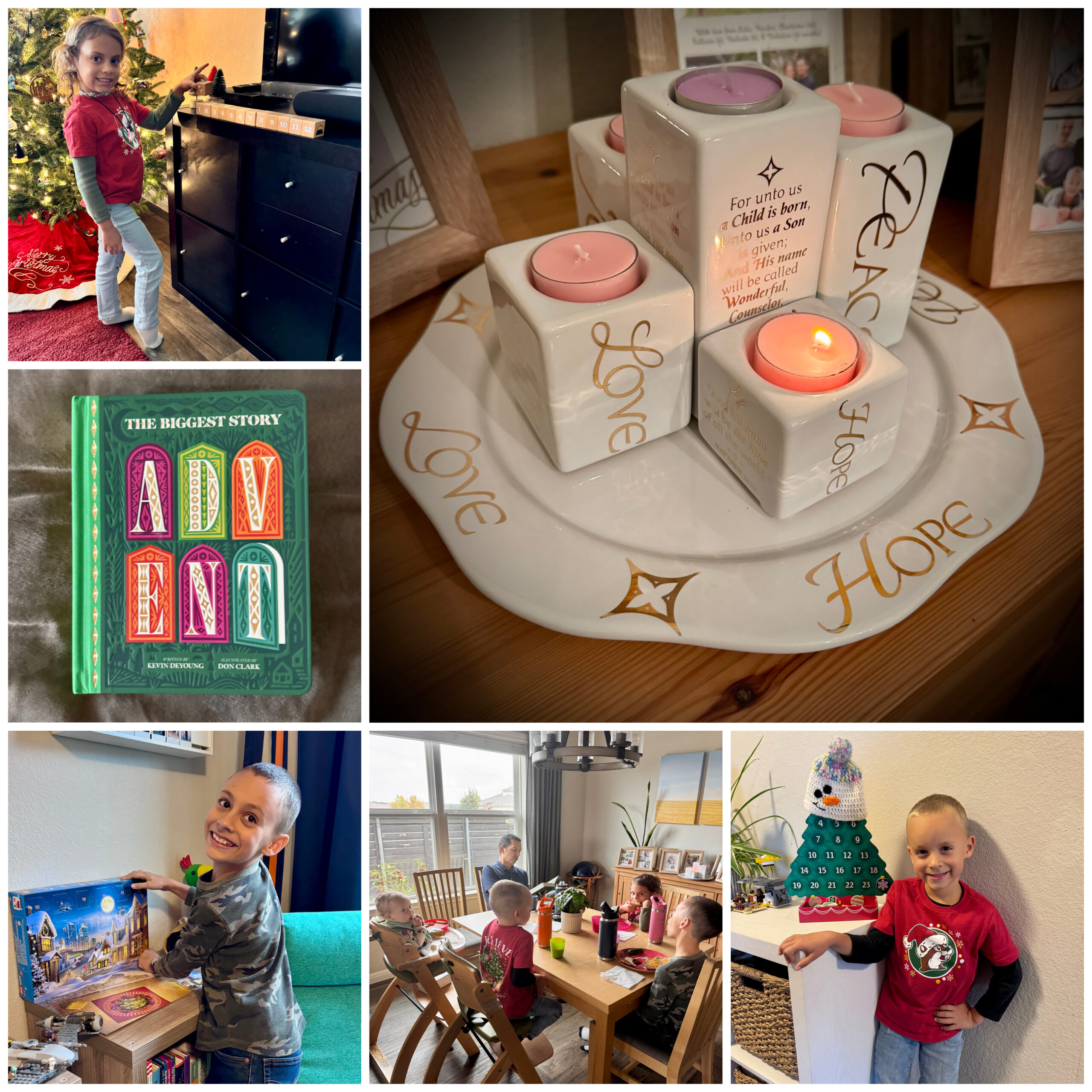 Our Advent traditions are always a highlight of our Christmas season, and per tradition we mixed it up with a little sacred and a little secular. Each Sunday night of Advent, we lit a candle on our wreath and did a small devotional provided by the kids’ program at our church. And for each night leading up to Christmas, we read from our Advent devotional, flipped one of our Advent blocks, added to our magnetic Advent tree, and opened a flap on our Lego calendar. Our three kids rotated through the three countdowns; we will need to add a fourth something next year when Nico is ready to participate! This year, adding to our usual Advent traditions, my parents sent a daily video with little Christ-focused Advent activities for the kids to do, and it was SUCH a fun way to celebrate the season across the miles.