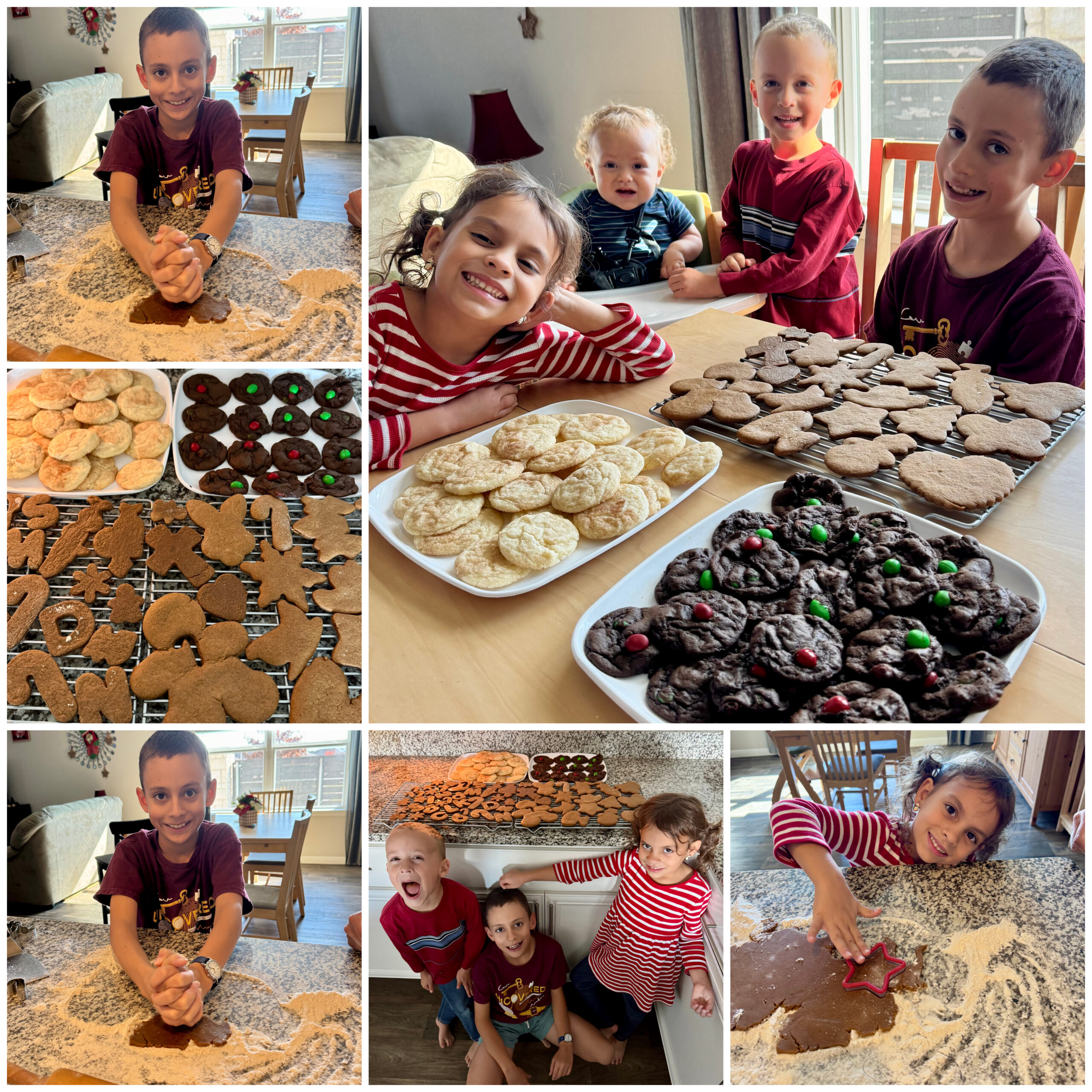 We followed up the family Christmas Festival with our holiday baking. This year we made snickerdoodles, dark chocolate M&M cookies, and gingerbread cutouts. Baking with all the kids in the kitchen is a huge challenge and I was thankful Luke was able to help out! (Note: everyone agreed that those gingerbread cookies are their favorite cookies EVER; the recipe is definitely a keeper!)