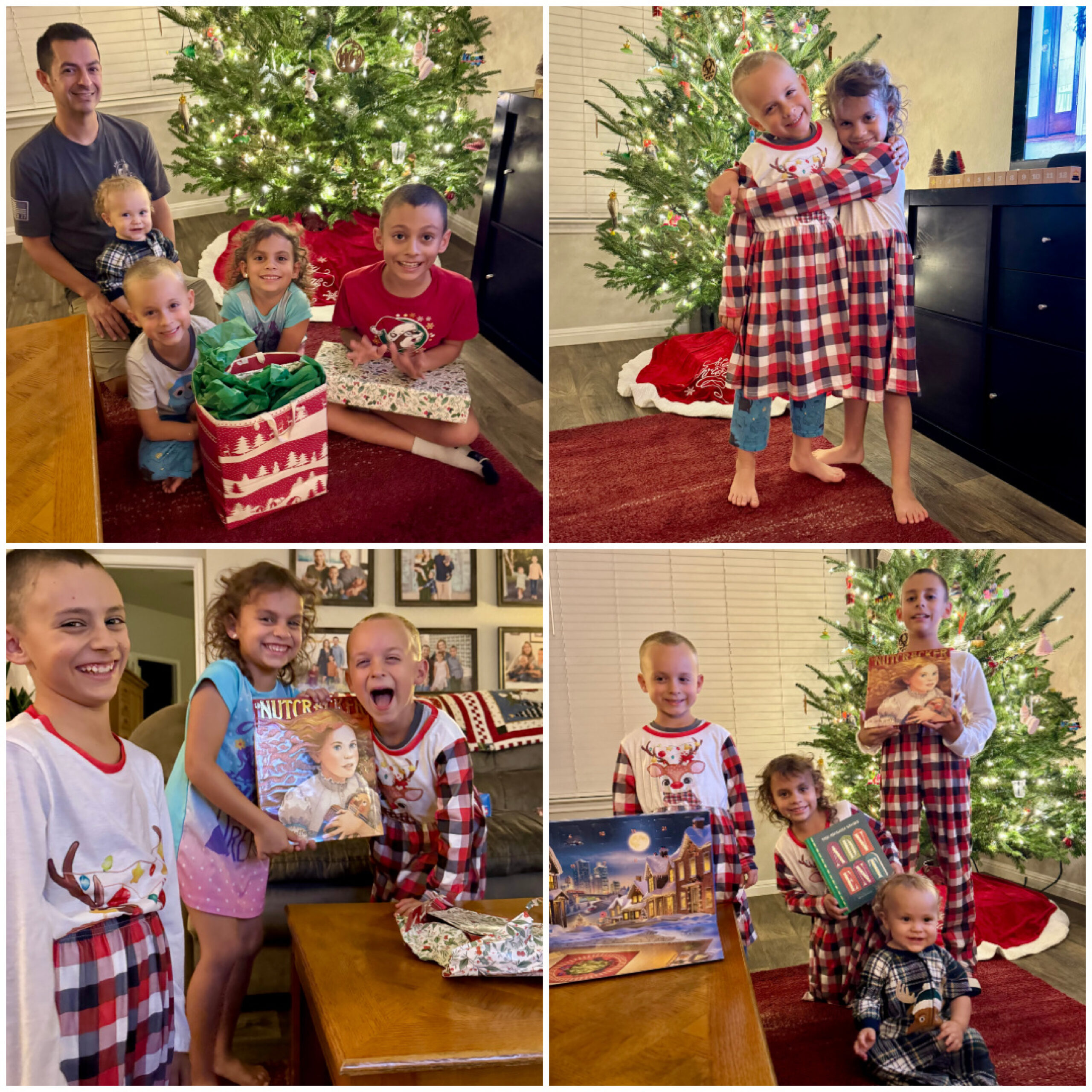 Once our tree was adorned, the kids got to open their first gift of Christmas: matching pajamas, a Lego advent calendar, a new Advent devotional, and a picture book (since we are going to see the live performance of The Nutcracker in two weeks). Somehow I accidentally ordered Sully the girl version of our new jammies and didn’t realize it until he’d opened them. He was a good sport about the mixup and had fun playing matchy-matchy with Kali for a bit before I repackaged the nightgown to exchange it for some boy jammies. It definitely made the present a memorable one!