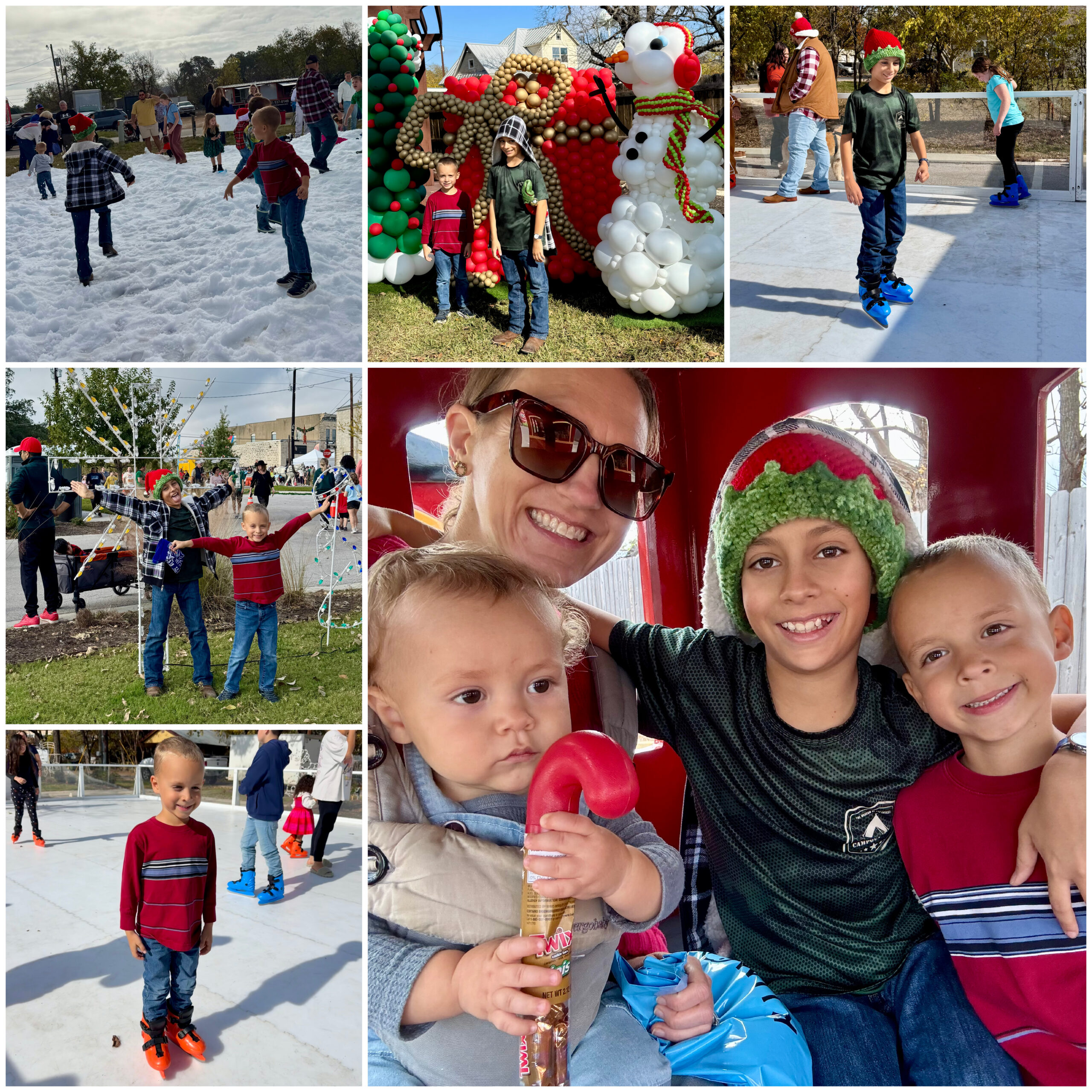 The next day, Luke stayed home with sick Kali while the boys and I went to the Liberty Hill Christmas festival in our little downtown square. The boys enjoyed a snowball fight and some ice skating, and it was fun to see all the vendors and even ride a train.