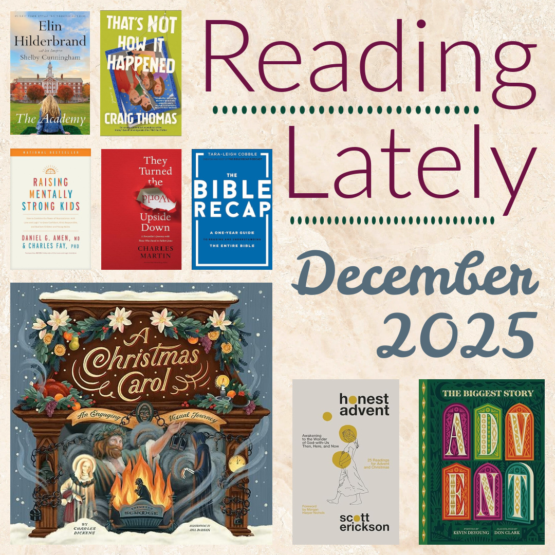 In non-Christmas reading this month (of which there wasn’t much) I read this frothy campus novel and this humorous and heartwarming family story. I also listened to this powerful reflection on the book of Acts and this helpful parenting book. Per usual, reviews will be shared in a Quick Lit post next Thursday.