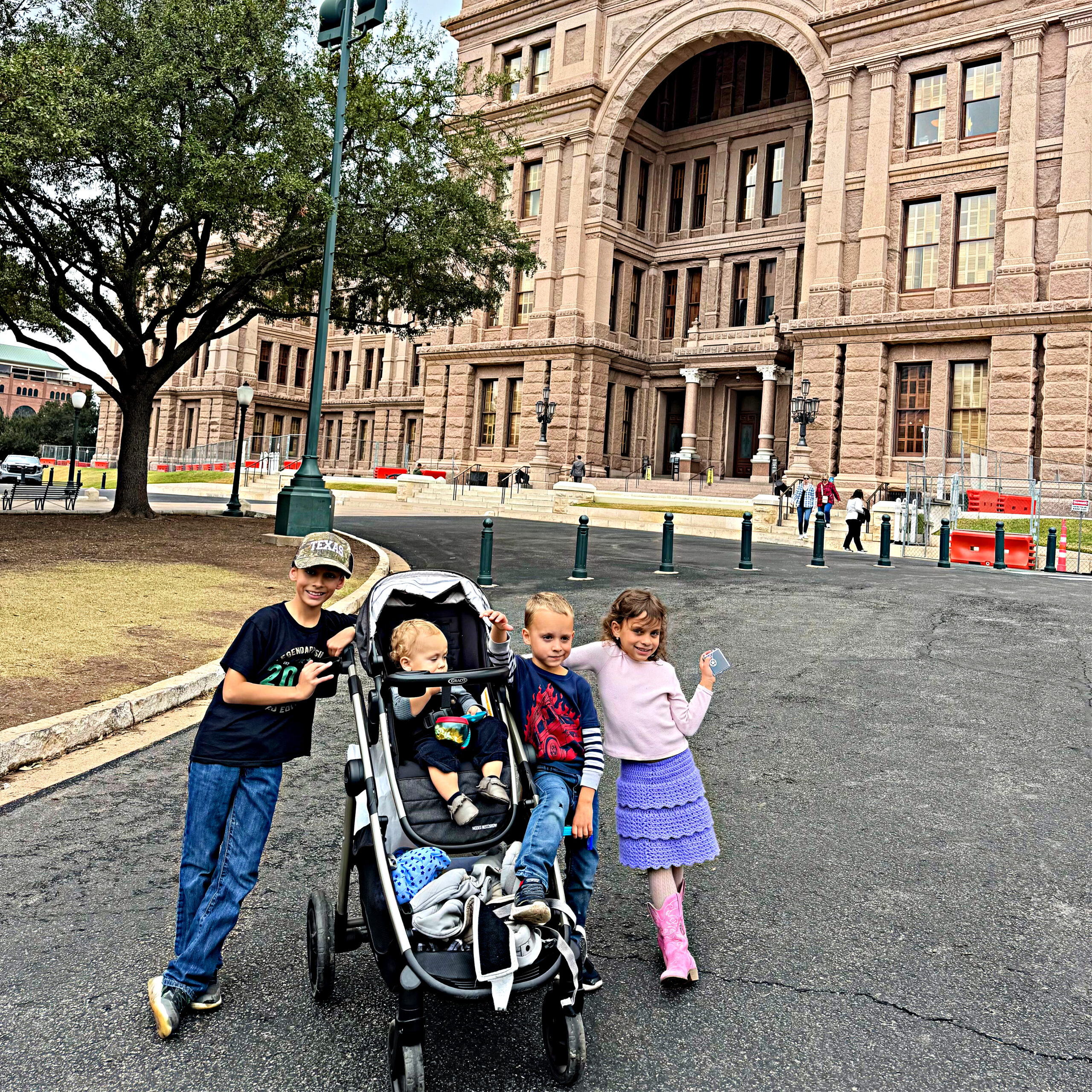 In January we went on a field trip downtown to tour the Texas Capitol. This time I managed to get us properly signed up and to the event. The tour itself went (mostly) well (see #4). Afterwards we drove to another spot downtown for lunch and needed to park several blocks away from our restaurant. I had the foresight to take a picture of our parking spot on the fifth floor so that I could remember where we’d parked. Unfortunately, I did not think to take a picture of the structure itself. The five of us made our way to the restaurant and enjoyed the meal with our friends, after which we returned to our car. . . or attempted to return to our car but somehow wound up in the wrong parking structure—a fact we didn’t realize until we had climbed up to the fifth floor and noticed that our car was not in its presumed location. This was met with great amounts of grumbling from the three big kids (who were exhausted after a long day) and from my own thighs (that were tired after climbing so many stairs with Nico in the baby carrier). The kids and I made our way back downstairs, found another structure, and climbed up. This, too, appeared to be the wrong parking garage. (Insert crying-face emoji here.) Believe it or not, this happened a THIRD time before I remembered that the parking pass in my wallet listed the name of our parking structure. The good news is that we eventually found our car, just where we’d left it; the bad news is that my children will never trust my sense of direction again (and who can blame them?!).