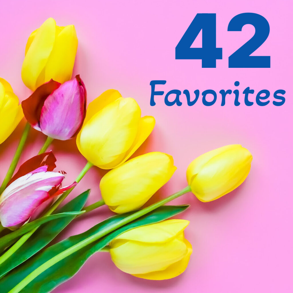 Personally, choosing favorites is one of my favorite things—right up there with making cheesy puns. 😉 And since today is my birthday, I decided to indulge myself with this quirky post of my personal favorites—42 of them (though we all know 28 is my favorite number) since I am 42 today!